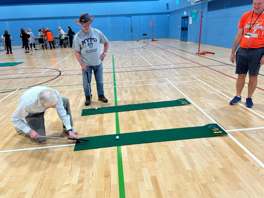 James Hale made us laugh this afternoon when he demonstrated his twist on indoor golf. James used the putter as a cue to knock the golf ball into the hole. It always brightens our day when we see our members use their creative talents in this way.