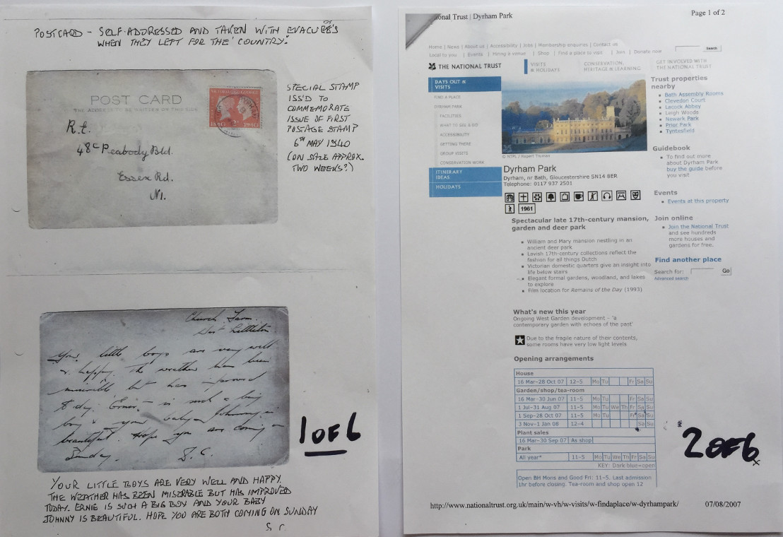 One of the carers Ernie Glenister then prepared and brought some old photos and documents going back to his childhood at school and wanted to share this with members. In his talk to members, Ernie goes back 79 years ago when he was 4 years old and his brother was 2 years old and they were evacuated in May 1940. They attended a nursery in Canonbury, Islington run by Lady Islington and the whole nursery was sent by coaches to Dyrham Park, near Bath, Lady Islington’s country seat.