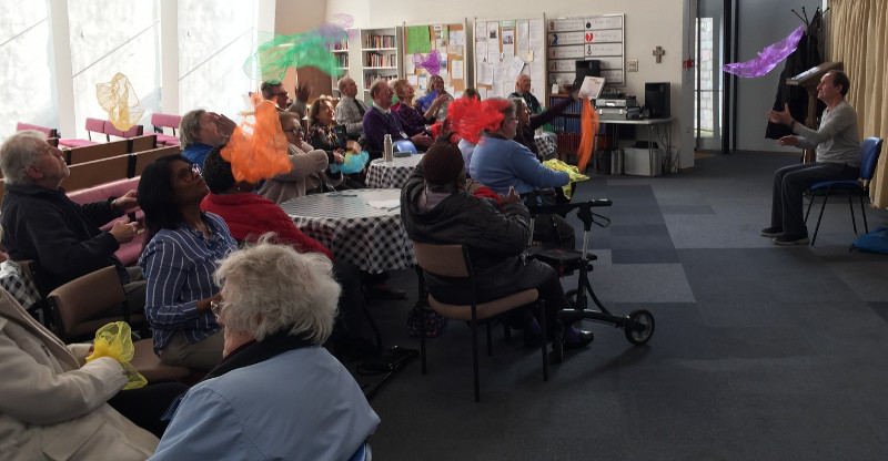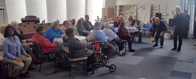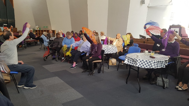 After the quiz Richard, our yoga exercises teacher, did about 30 minutes of chair yoga exercises. Richard introduced colourful scarves to make the exercises more enjoyable. All attendees joined in and had a very enjoyable time.