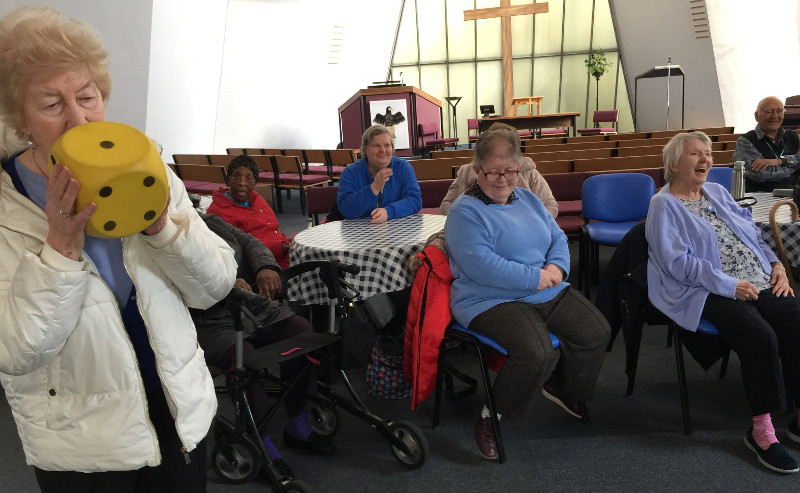 The yoga session was then followed with our entertainer James Le Bec who sang songs selected by the members. James then asked the members to identify various songs and when they guessed them correctly, they were asked to throw a large dice to get points. Unfortunately, the total number of points during this session were well below other Dementia Clubs.