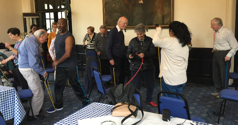 It was then time for exercises with Eon and as usual Eon makes sure the chairs are set up properly and is prepared to give the group a really challenging and fun workout to music. Eon extended his time today and members also had fun using the colourful extendable ropes.