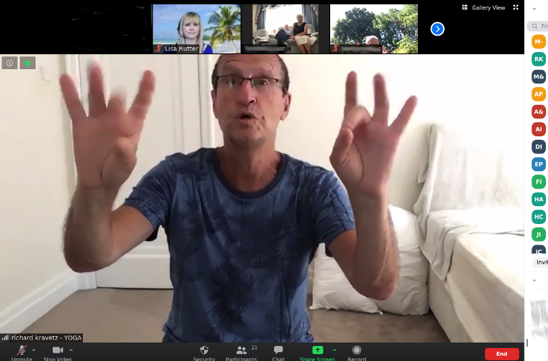 The session then followed with Richard Kravetz who today showed us ways of cooling our breath to keep cool and then got us working all our muscles. Richard then ended his session with a quiz and the winners of the quiz with the most points were Pamela and Melvyn. Richard held up the virtual prize today which was a tape measure so that we could all practice the 1 metre rule.