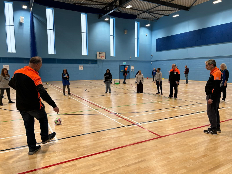 The cheerful Barnet Walking football team were on hand to guide our members through simple exercises using an inflatable lightweight football. These exercises included passing the ball to another player by throwing it or kicking the ball.