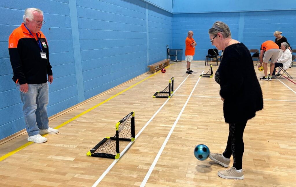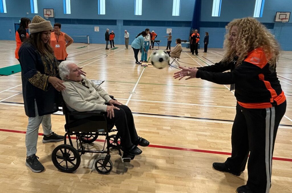 Shaun began the session in the large sports hall today with warm ups to a few of our favourites. Excitement was building in the hall as our members participated in our regular egg and spoon race. This activity encourages everyone to keep their body moving whilst simultaneously focusing on hand eye coordination.